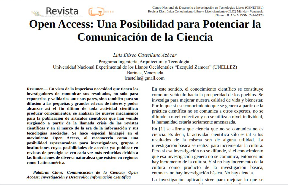 Fuente: Tomado de la Revista Electronica Conocimiento Libre y Licenciamiento (CLIC), 5(8), 2015. https://convite.cenditel.gob.ve/revistaclic/index.php/revistaclic/article/view/553