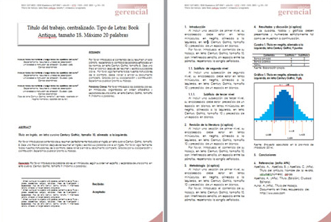 2. Fuente tipográfica (trascripción e impresión). El título del trabajo se escribirá con letra tamaño 18, en el tipo Book Antiqua; elcontenido del texto y todos los subtítulos se escribirán con letra tamaño 10, en el tipo Century Gothic; los títulos de las tablas, cuadros y gráficos y sus contenidos se escribirán con letra tipo Century Gothic, tamaño 9. Todo ello, según el formato de postulación de manuscrito.